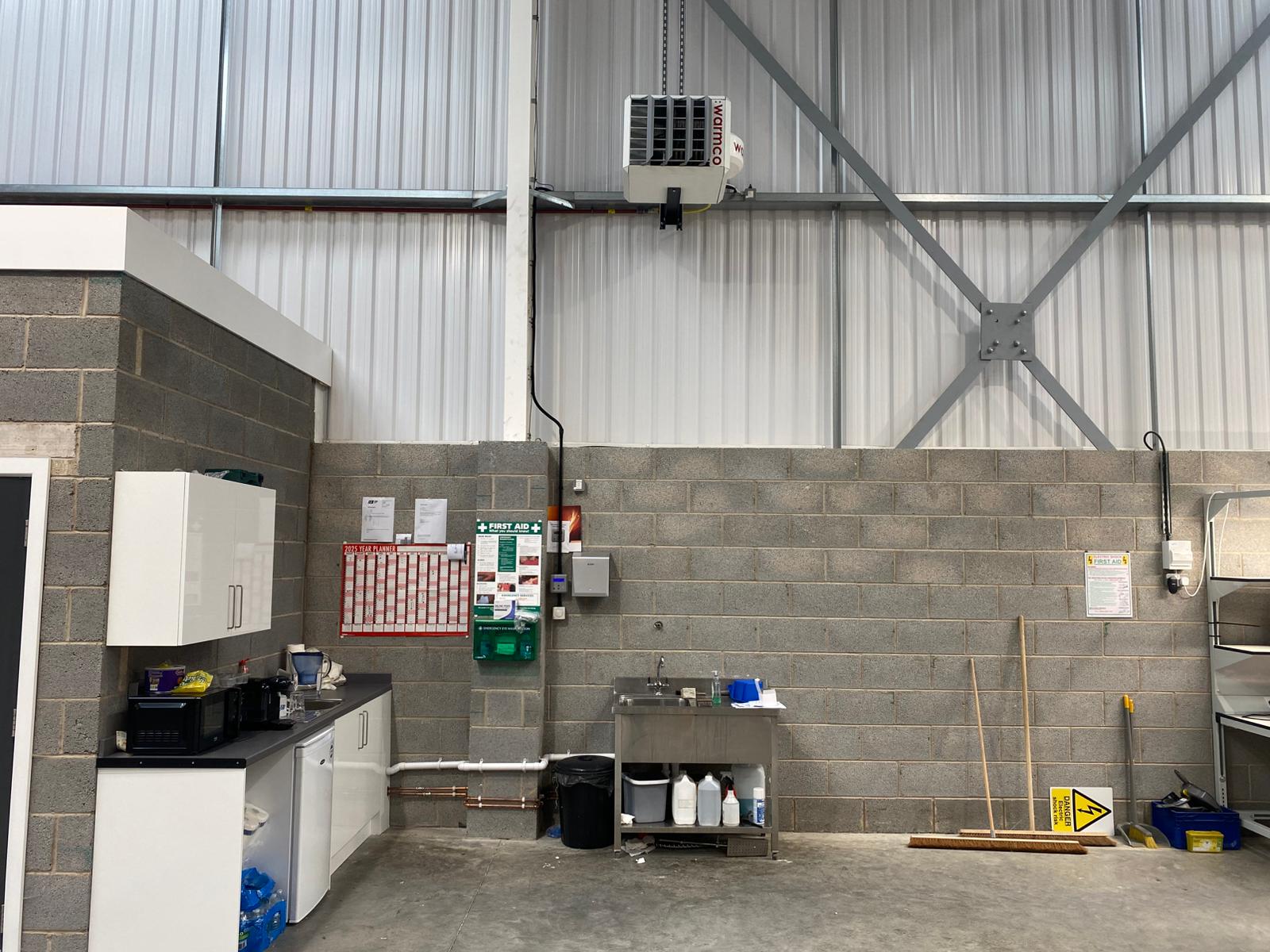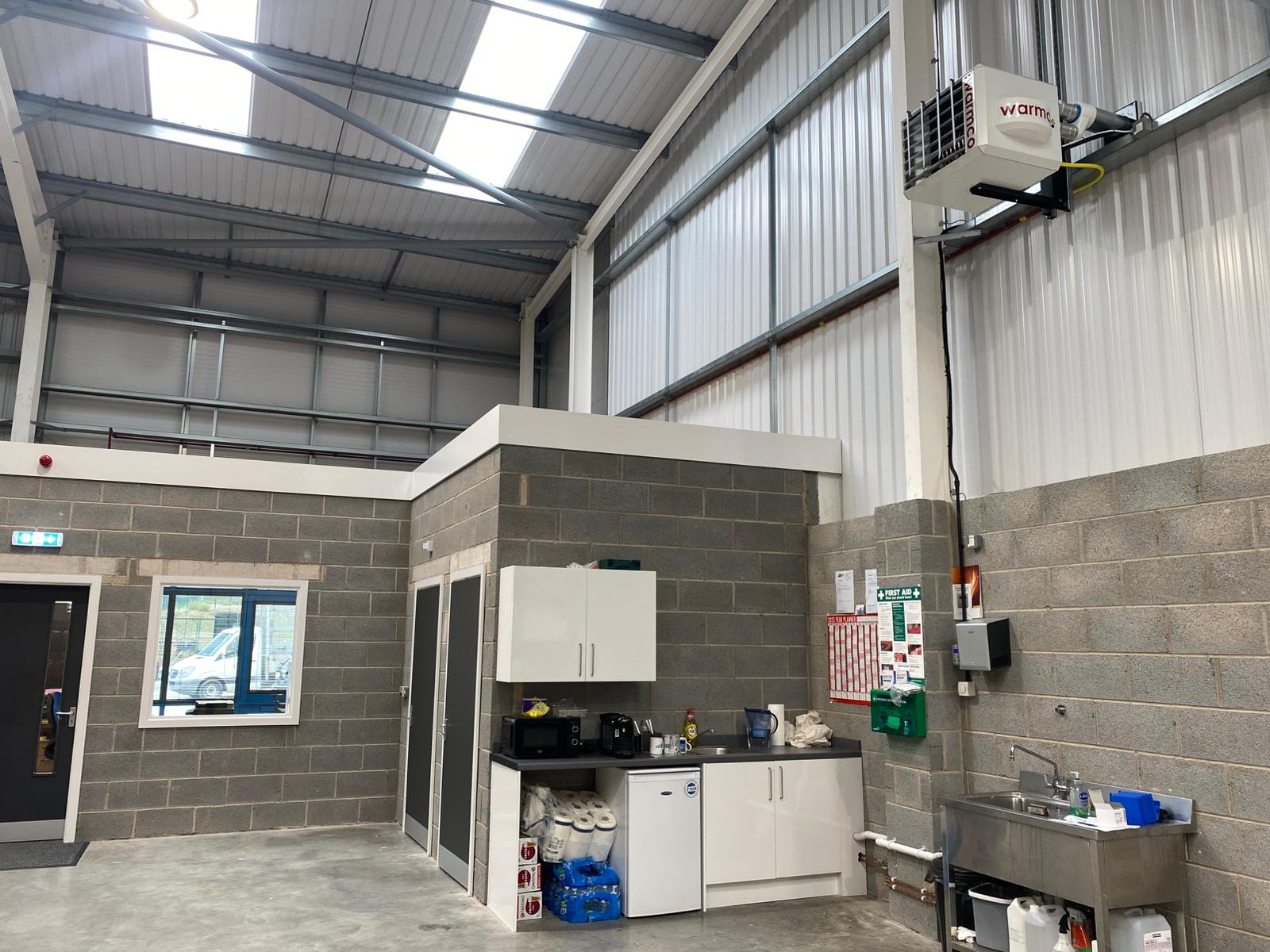 Warmco installed an energy efficient workshop heating system for Industrial Electronic Repairs Ltd in April 2025. We were asked to install a Winterwarm Warmco XR20 suspended, gas fired, space heater alongside one Winterwarm WCU40 heat recovery fans into these 3,000 sq ft modern portal framed, premises in Wakefield.